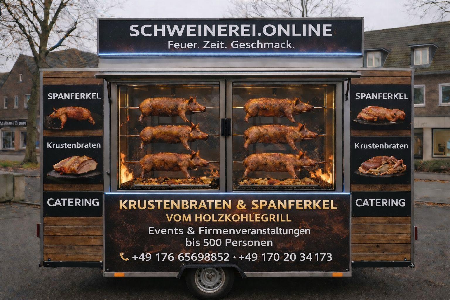 Frisches Spanferkel oder Krustenbraten vom Holzkohlegrill – live zubereitet und direkt serviert.